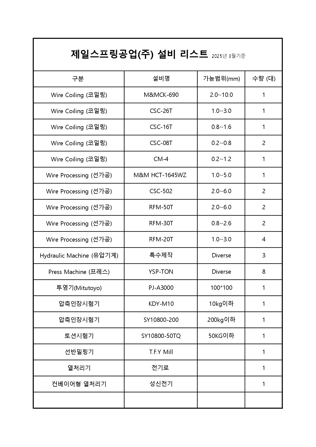 제일스프링공업(주) 설비리스트